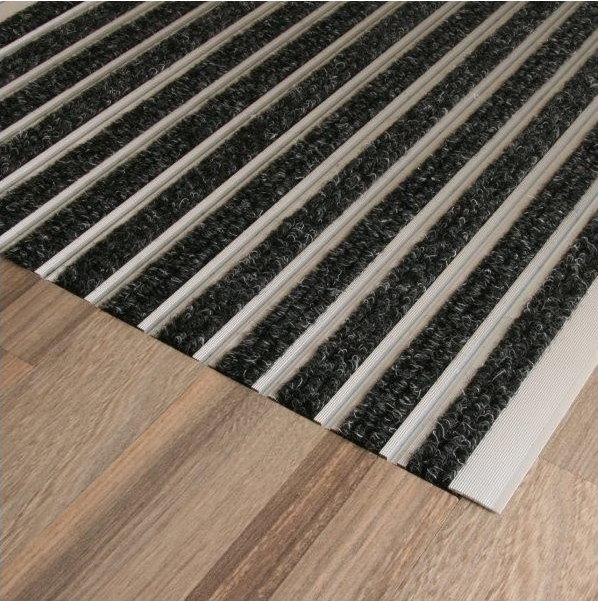 Entrance matts are composed of aluminium profiles with carpet brushes or rubber inserts fixed to the floor substrate. The key purpose of entrance matts is to act as a dirt barrier preserving the cleanliness of the building entrance from the natural weather elements and footfall. Maintenance and cleaning is very easy and entrance matting resolves acoustic issues when entering a building as well as avoid problems with heels and wheeled traffic. Entrance matts are available in a wide variety carpet or rubber finishes.